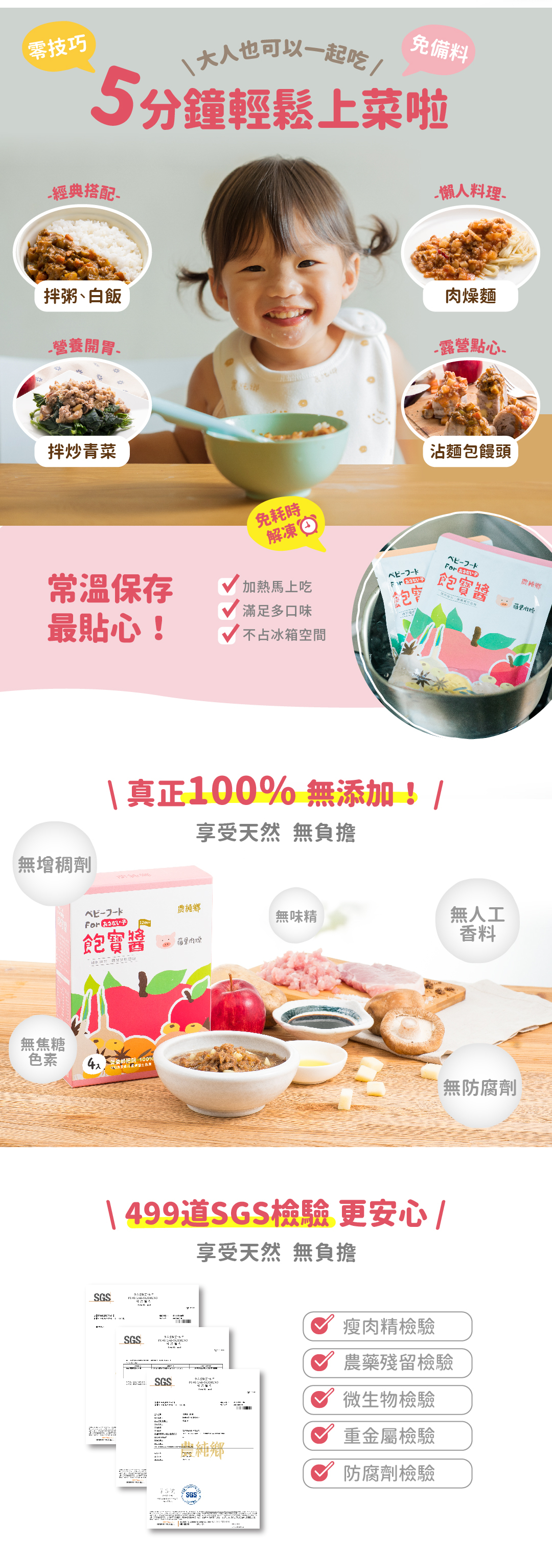 1 歲以上適用/新鮮製作 可常溫保存 12 個月/加熱快速 隨時享用/配麵配飯都OK!