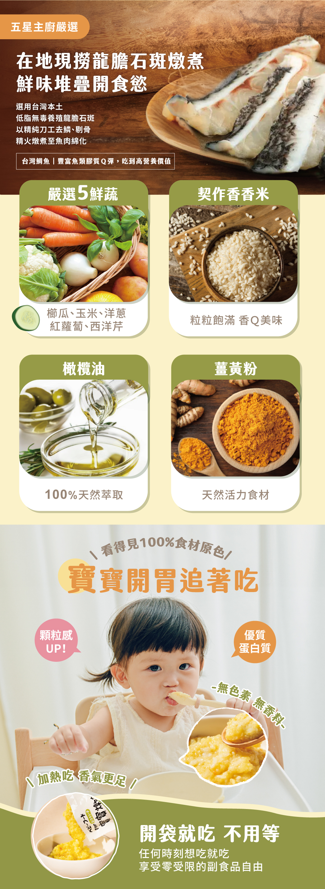 |珍貴龍膽石斑+Q彈鯛魚,奢華海味新體驗,寶寶開胃主動吃!