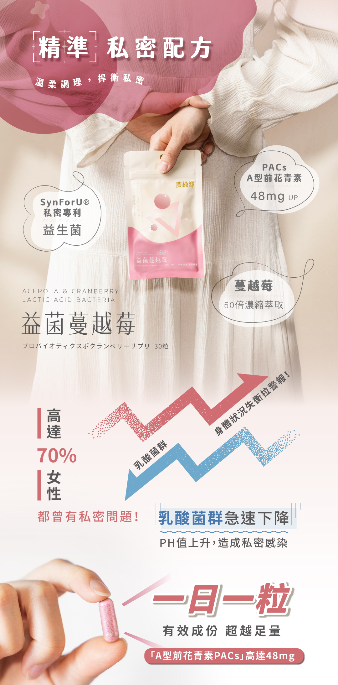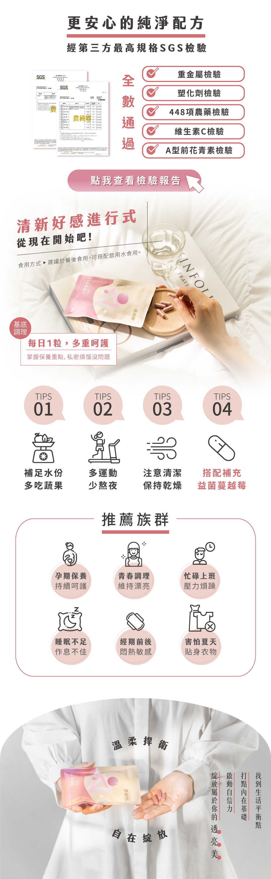 超越足量有效成分 / 守護酸鹼值平衡 / 改變細菌叢生態 / 維持私密健康