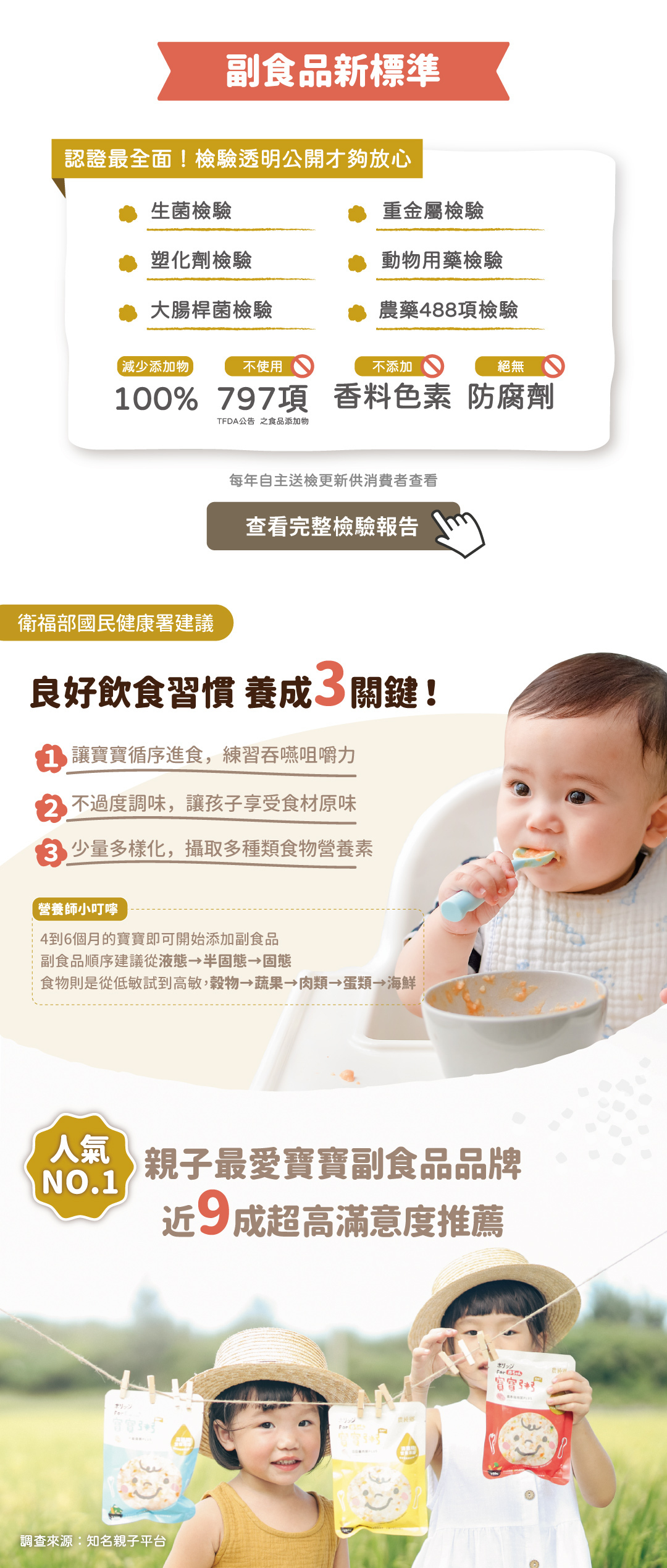 全台唯一『雙』100% 無添加潔淨標章的寶寶粥