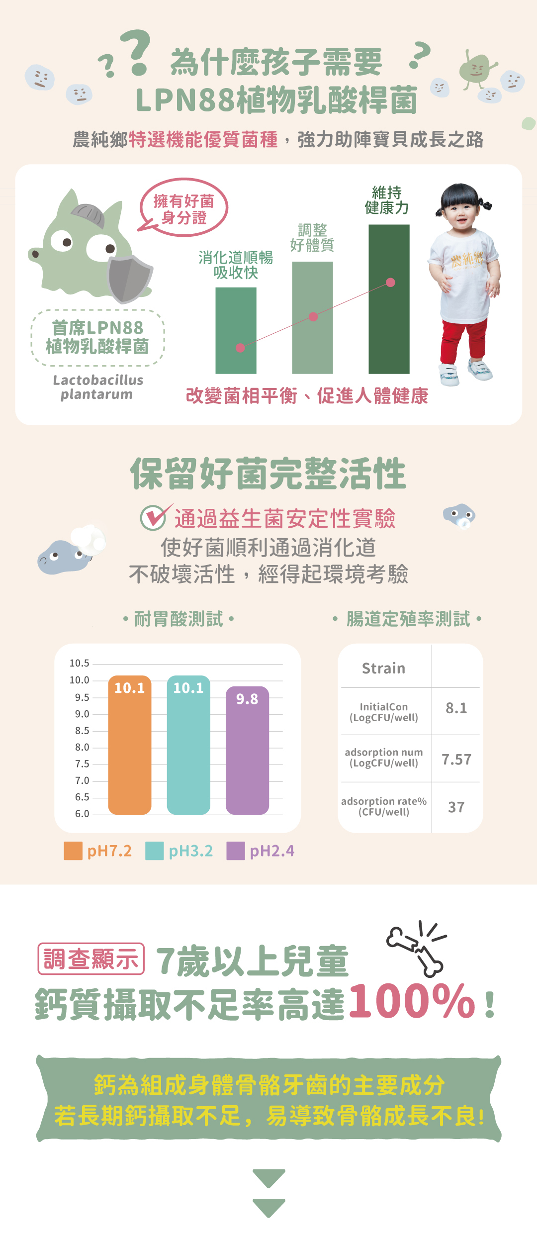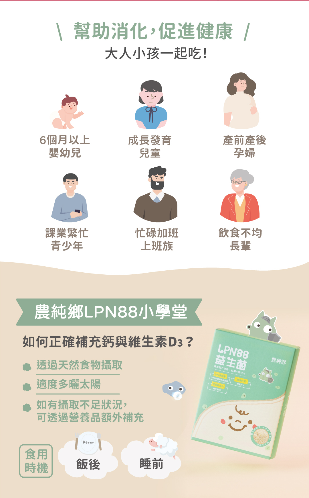 調整體質/維持消化道機能/增進鈣質吸收/幫助骨骼與牙齒發育