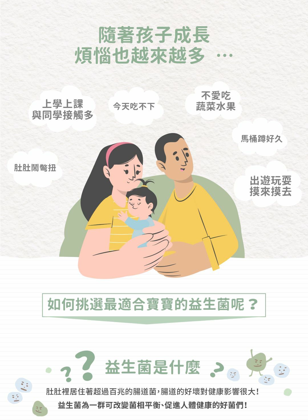 專為嬰幼兒開發 / 調整體質 / 維持消化道機能 / 改變細菌叢生態/