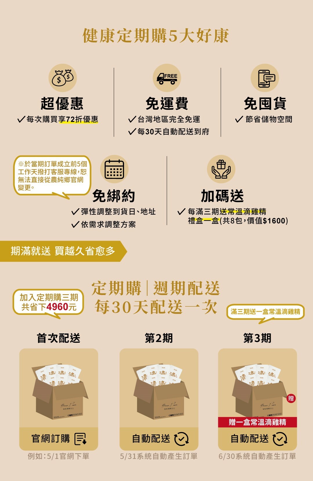 所有定期購商品,【滿3期】贈「農純鄉 滴雞精禮盒 (價值$1,600)」