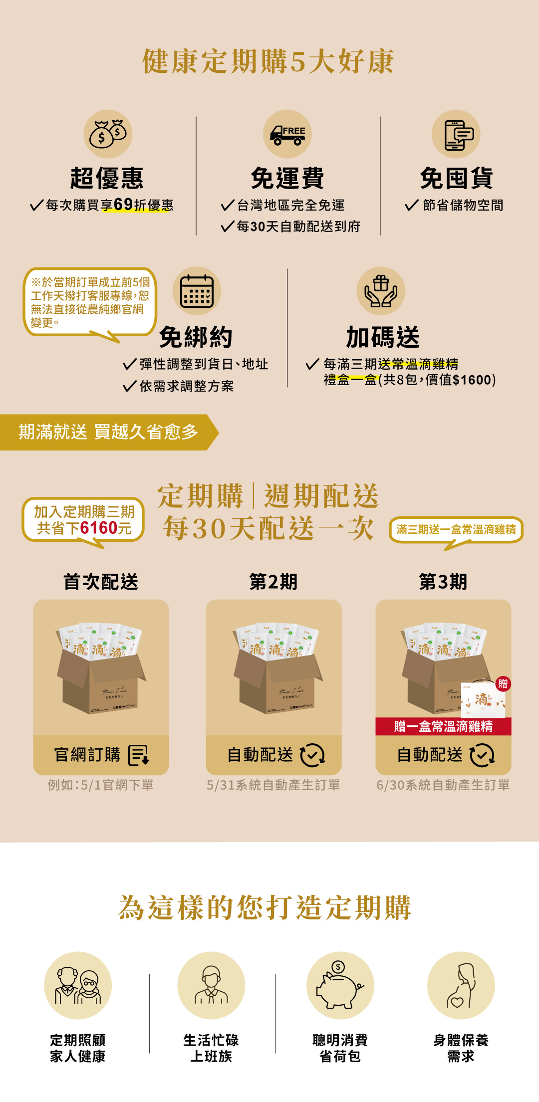 所有定期購商品,【滿3期】贈「農純鄉 滴雞精禮盒 (價值$1,600)」