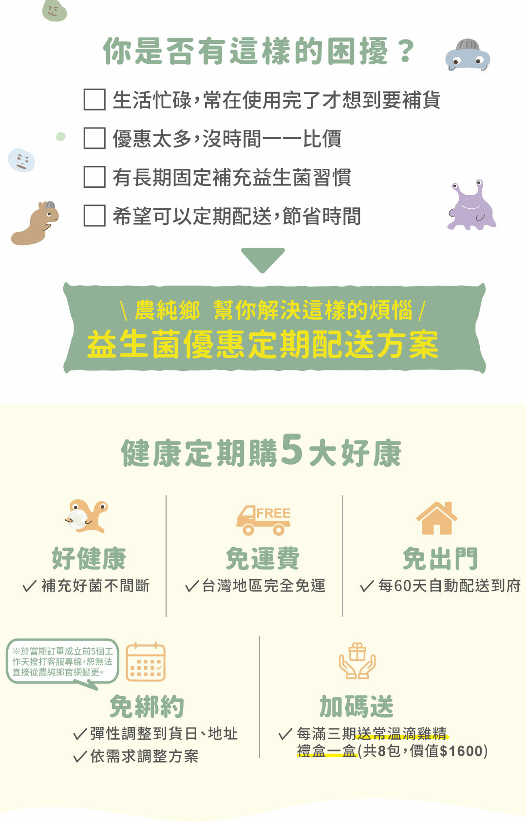 所有定期購商品,【滿3期】贈「農純鄉 滴雞精禮盒 (價值$1,600)」