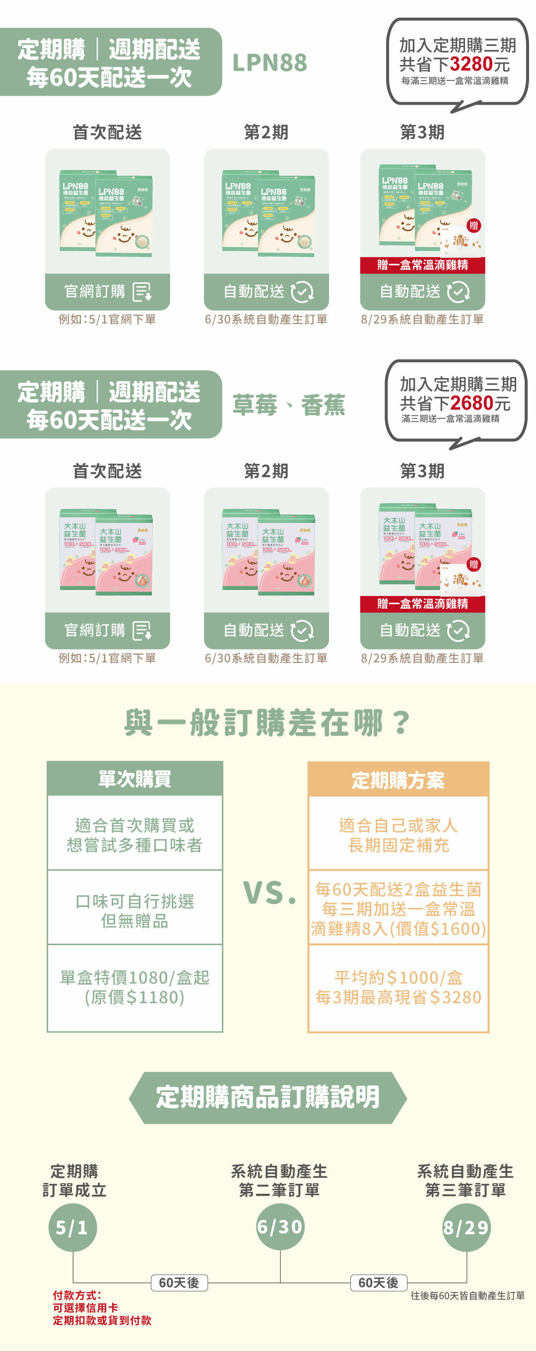 ● 每 60 天自動配送 2 盒 純淨原味大本山益生菌 (30入)