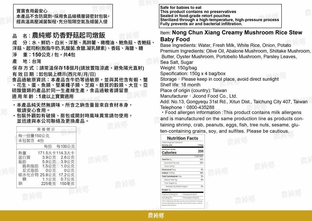 農純鄉 寶寶燉飯|奶香野菇起司燉飯 (4入/盒)