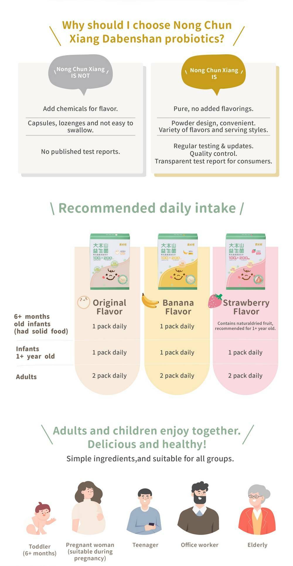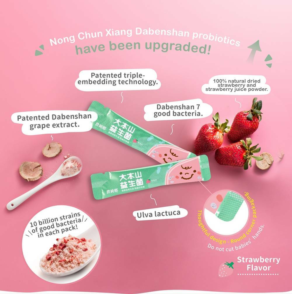 Product: Nong Chun Xiang Dabenshan Probiotic Powder – Strawberry Flavor
