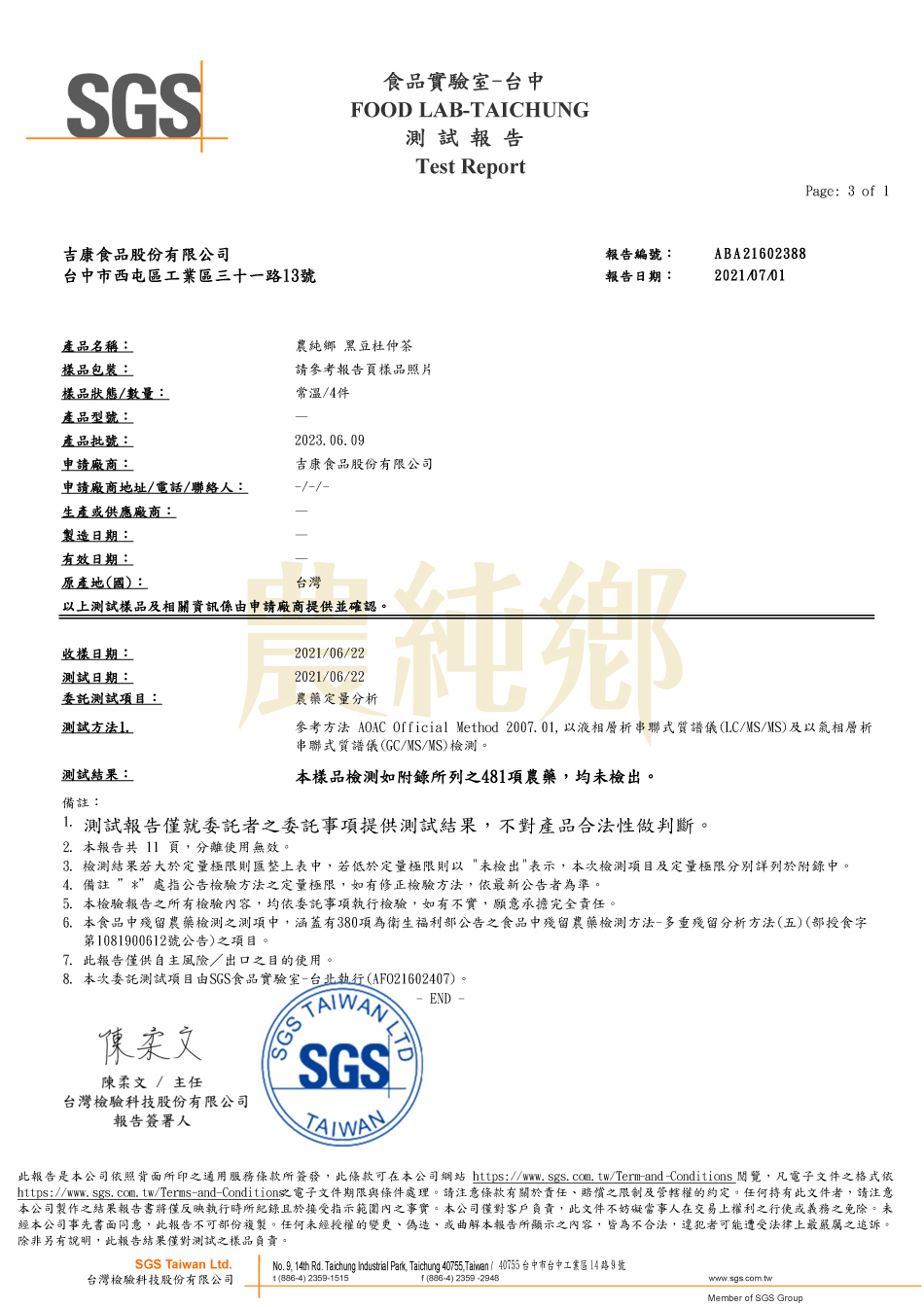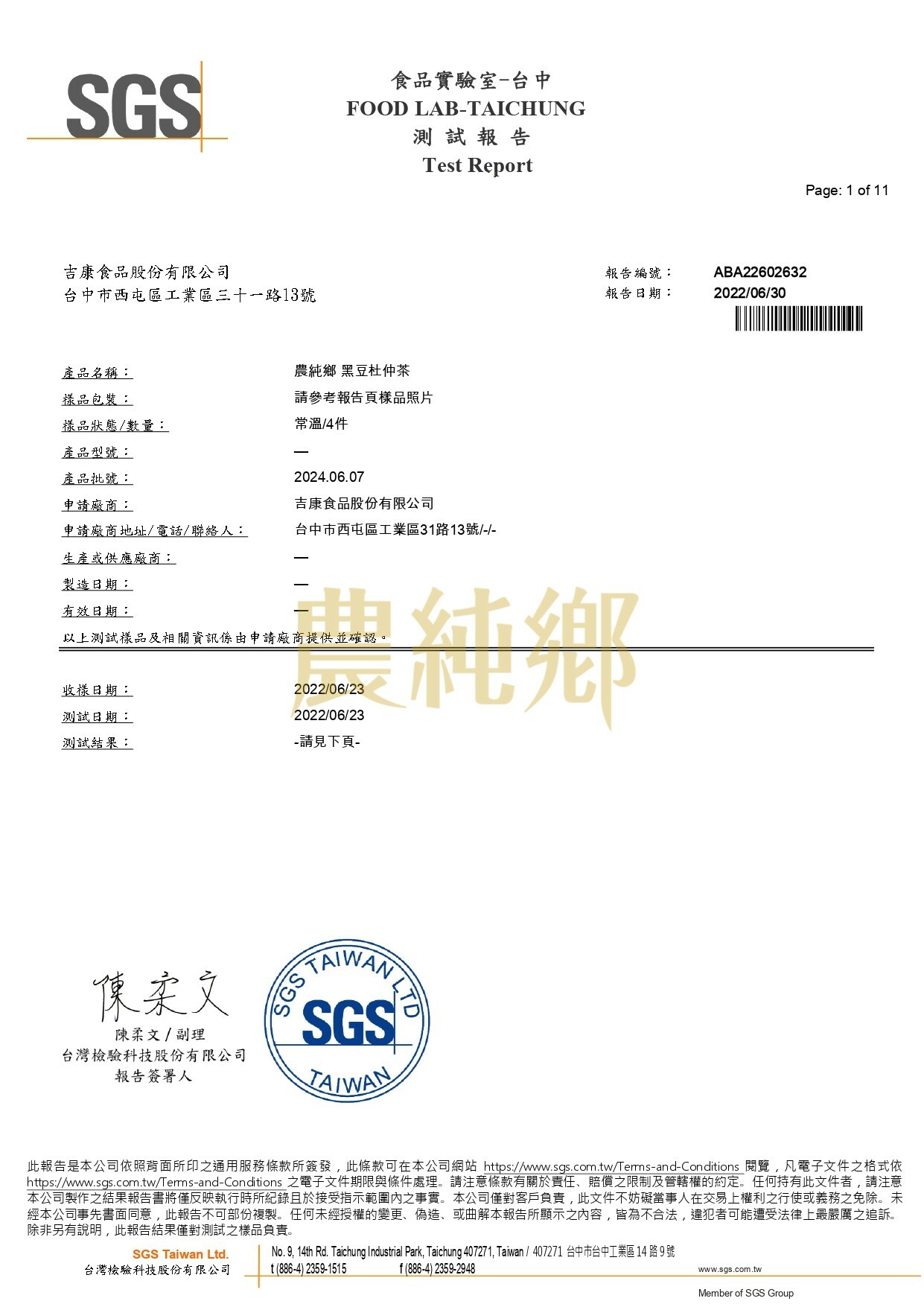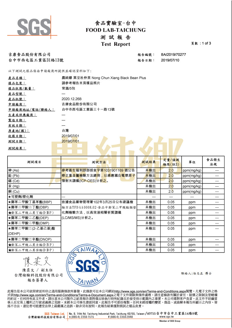 【黑豆杜仲茶】生菌、大腸桿菌、塑化劑、防腐劑、重金屬 (砷、鉛、鎘、汞、銅) 檢驗