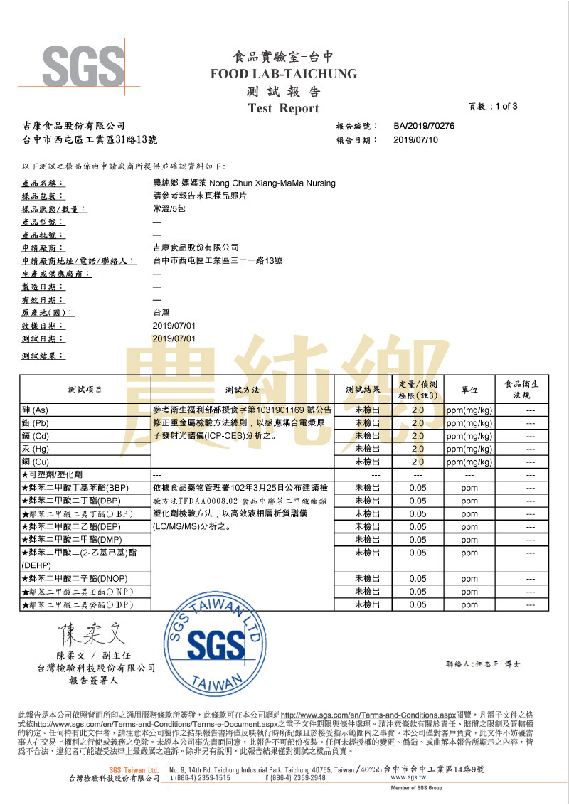 【媽媽茶】塑化劑檢驗