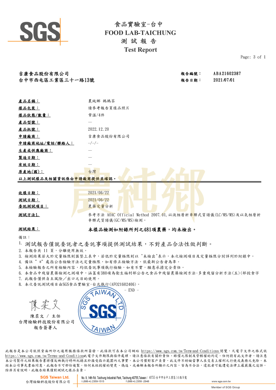 【媽媽茶】農藥殘留檢驗