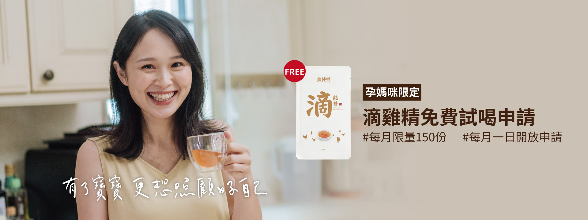 ※目前僅開放孕媽咪申請滴雞精試喝,若您不符合本活動對象資格,可參考購買單入滴雞精或至各百貨櫃位免費試喝。(因疫情緣故,部分百貨無開放試喝,前往之前建議先致電櫃位確認)