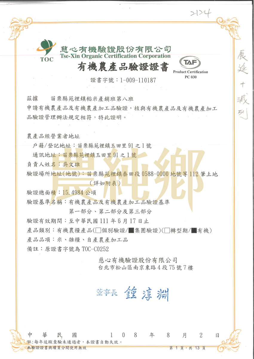 有機農產品證書