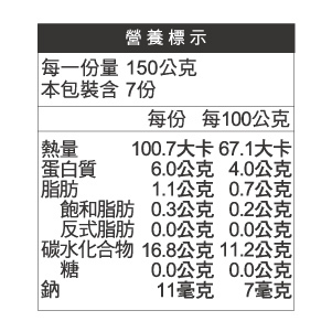 • 本產品純天然無調味,所含之鈉含量皆來自食材本身,敬請安心食用