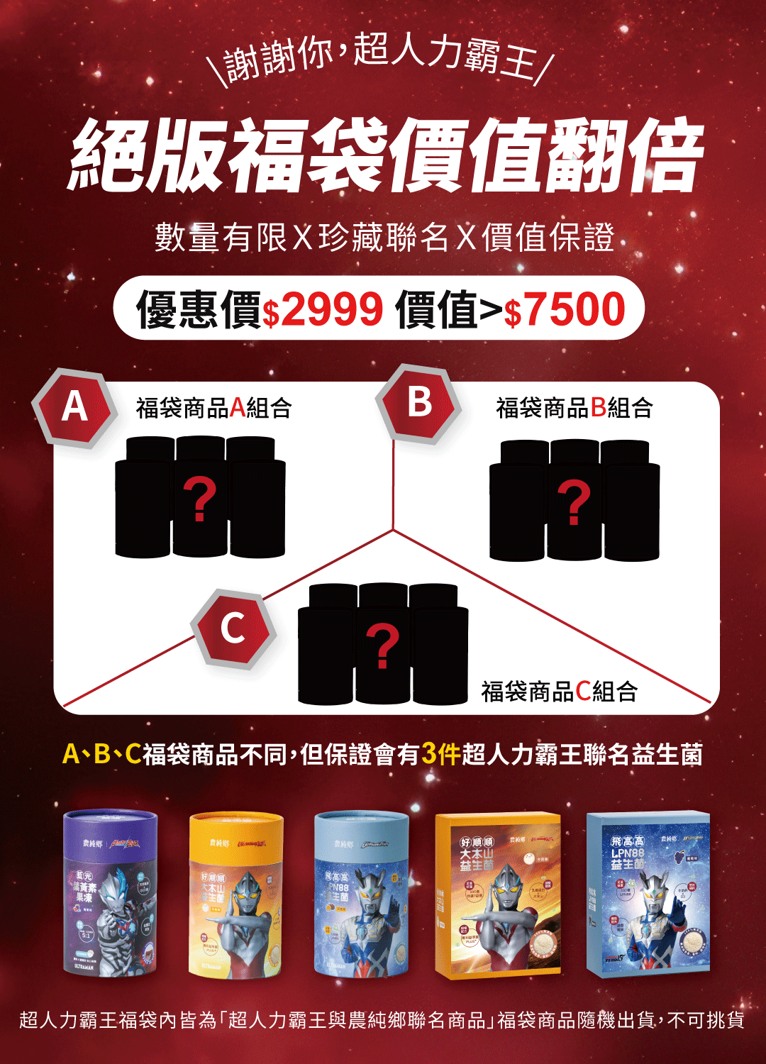 ▌$2999福袋實際商品價值>$7500,保證含3件聯名益生菌