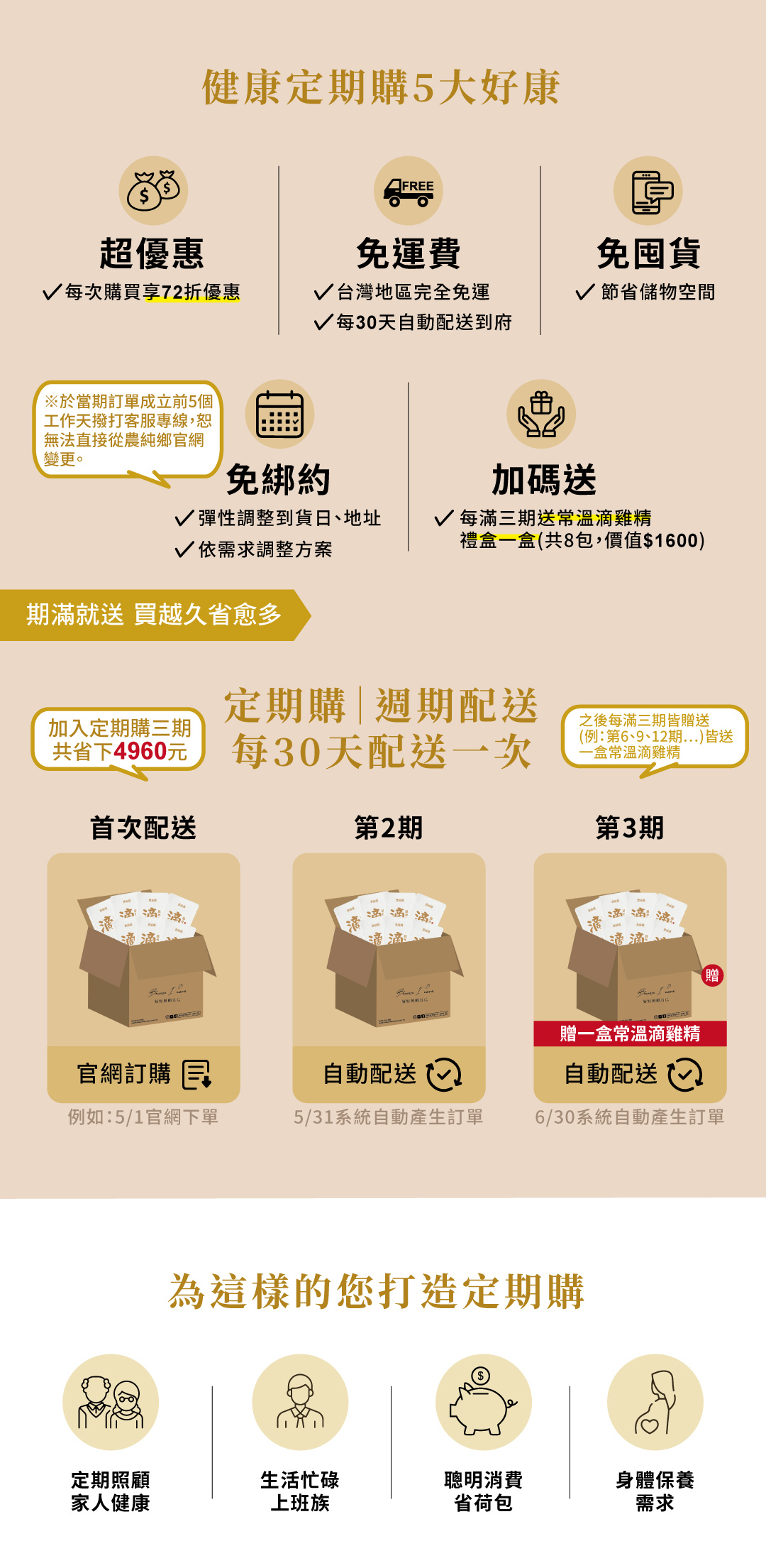 所有定期購商品,【滿3期】贈「農純鄉 滴雞精禮盒 (價值$1,600)」