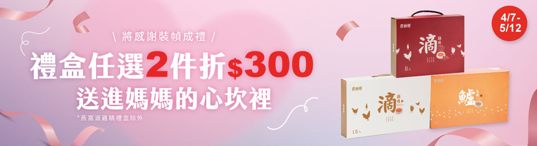 ▌全館禮盒買2件現折$300(燕窩滴雞精除外)